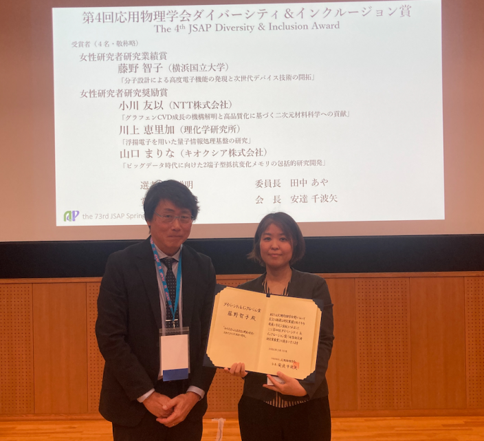 先進化学エネルギー研究センター 先進蓄電ラボの藤野智子准教授が応用物理学会「D & I賞 女性研究者研究業績賞」を受賞